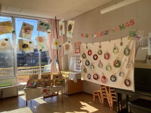 そしてホールには、各クラスの作品とクリスマス飾りと